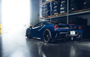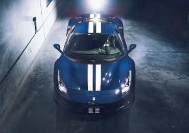 Award winning 2019 Ferrari 488 Pista with over $75,000 in professional upgrades by Ultimate Auto, Orlando and selected by Ferrari to represent the model for the 75th anniversary register. In stunning and extremely rare Blu Pozzi, (said to be Enzo's favorite color), and accented with Argento Nurburgring Stripes. This car has been tastefully upgraded with extensive Novitec carbon including the entire engine compartment. A custom harness bar was then added and color matched to the exterior along with custom race harnesses to perfectly match the exterior striping and provide that true 'race car personna'. Sitting on Novitec springs to provide that improved stance (while still maintaining full front axle lift capabilities), and a complete Novitec exhaust to provide the correct and maximum benefit of the engine. Finally the cars power was upgraded using a Novitec N Tronic unleashing this beast to its maximum potential. All Novitec upgrades approved by Ferrari, and do not effect warranty. The car is completed with a custom installed front and rear K40 with in mirror monitoring, and full body PPF with a scrape guard added under the front for that ultimate protect. This car sits in pristine condition and only 7000 miles on the clock. This is truly the Ferrari lovers collectable, and an investment that will keep on increasing in value. Price on Application